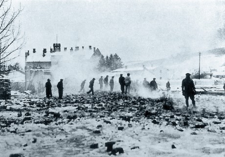 Bourání bývalé Štěpánkovy obuvnické továrny v roce 1935, v pozadí tehdy nový hotel Máca, později Stadion, dnes Saloon a Máca. Po Štěpánkově továrně zůstal pouze několikametrový artefakt.