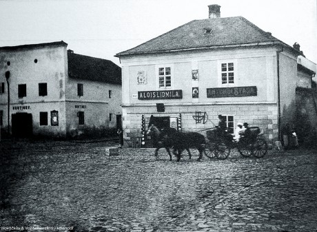 Svatební kočár míjí známé Lidmilovo železářství, které stálo v rohu náměstí mezi hotelem Balkán a radnicí. Ustoupilo koncem sedmdesátých let nové poště. Dle Nováčkova & Vojtěchova zlínského kalendáře.