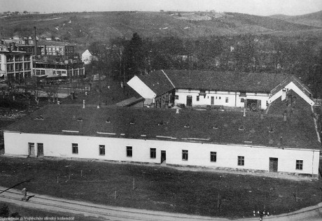 Jihozápadně od zámku se rozkládal komplex panského dvora; když jej z bourali, dostal celý prostor mezi zámkem a Tržnicí převážně parkovou úpravu (v pozadí rozestavěná dnešní fakulta technologická U.T.B., tehdy jedna z administrativních budov fy. Baťa)